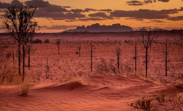On a recent visit to central Australia we went to photograph Uluru at sunset. However turning 180 degrees provided this view of Kata Tjuta showing a completely different colour of the sand.