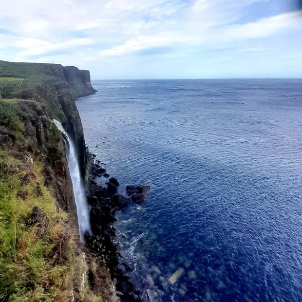 Waterfall appears on the edge of nowhere in the wilds of the Isle of Skye, Scotland