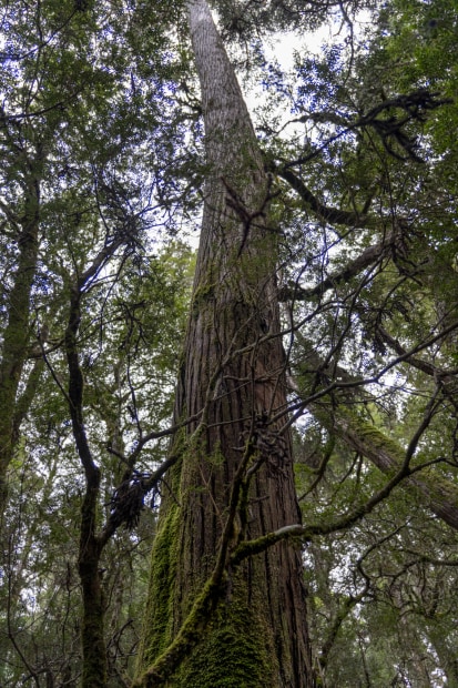 They grow slowly, 1m in 50 years. This one is 30m high, 1500 years old. Only few are left in the Tasmanian rainforests, now protected from logging.