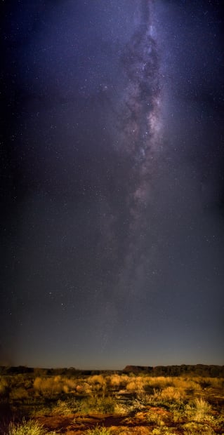 The Milky Way taken over Kings Canyon in the Northern Territory. The pano comprises 12 photos merged in lightroom