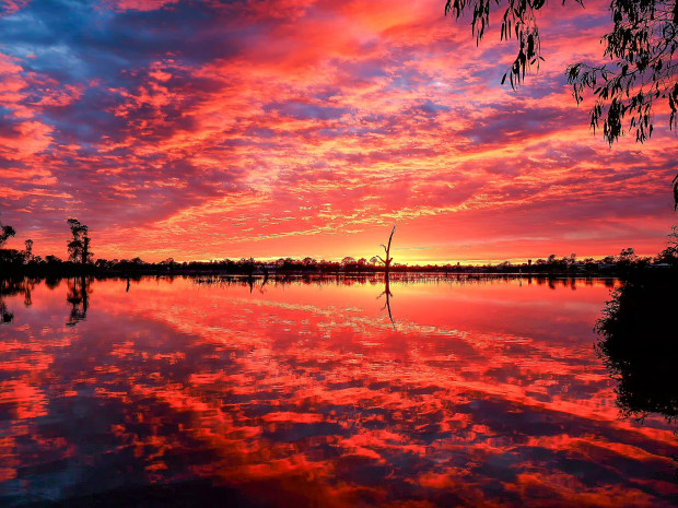 Sunrise on Lake Nagambie, reflecting the stunning colours