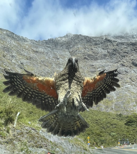 Kea about to land on my windscreen
