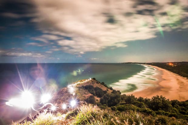 A composite of 5 images detailing my journey from the top of the ridge to the bottom using my phone light. I wanted to create an iridescent leading line. Image was taken at Byron Bay Beach