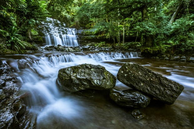Liffey Falls runs through dense forest and rock in a way that feels built by weather, not by people. I framed the scene to show the water carving its way forward while the trees and moss close in around it. The image is about wild structure and movement, where everything looks alive, wet, and constantly changing.
