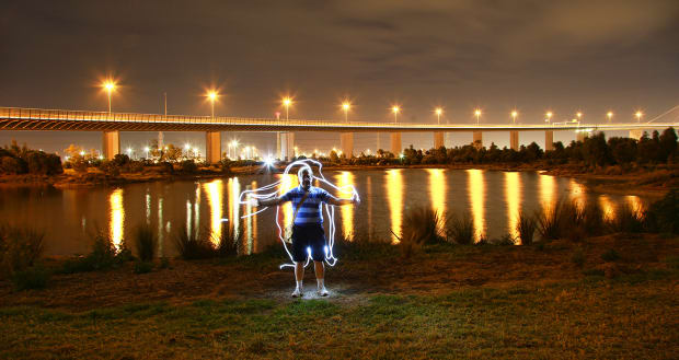 My friend and I decided to go down to Westgate Park, in Port Melbourne and instead of taking the bridge I got him to stand there while I took a torch around him.