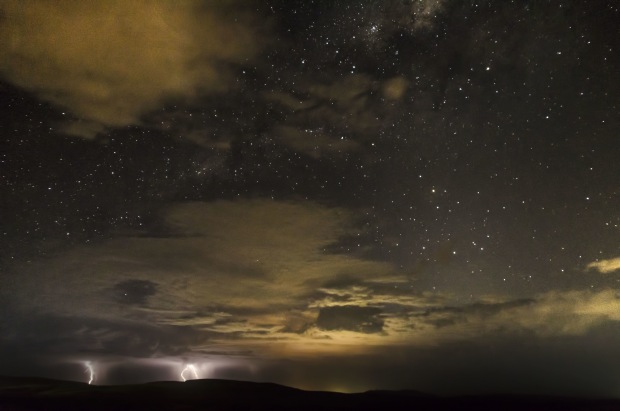 Corey Kennett, Lightning dwarfed by the galaxy (May theme: The night sky)