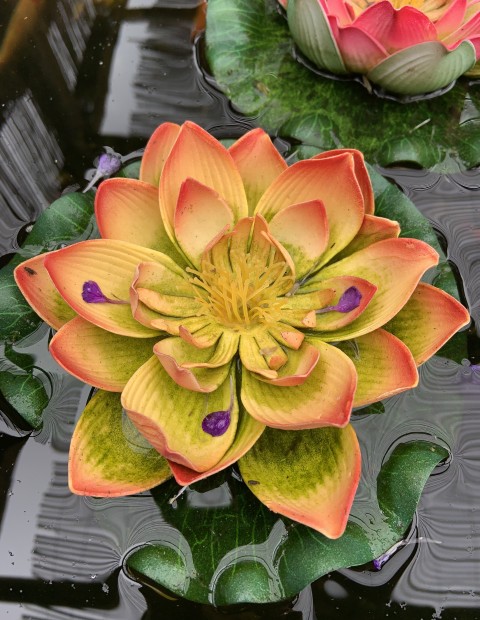 Colourful water lilies on a koi pond