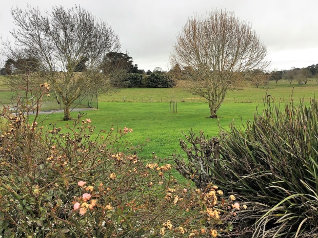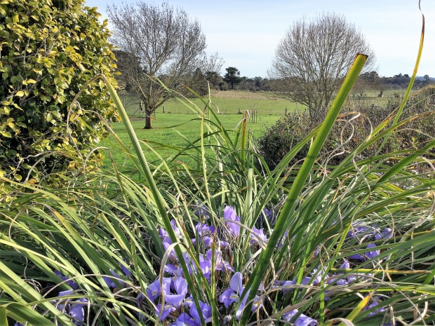 Even though the trees are bare, lingering winter color in the garden foreground still creates a pleasing outlook.