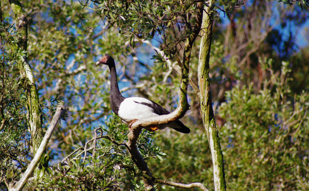 Magpie Geese in a tree keeping eye on the family on the lake, taken with Pentax k70