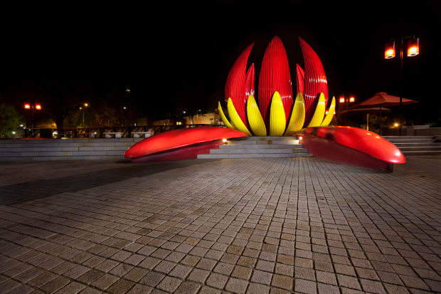 Light painting of the lotus flower sculpture in the Chinese gardens of Bendigo, Vic.