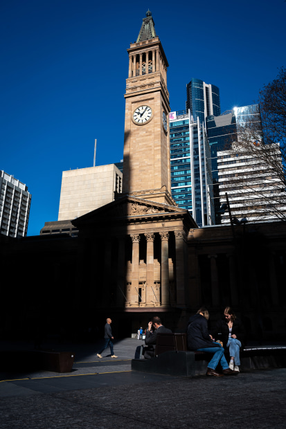 A perspective on the Brisbane's city hall made interesting by the interplay of light and shoadow.