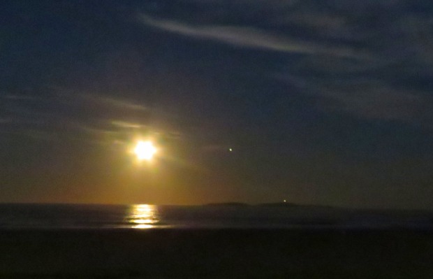 Full moon over the ocean with Montague Island.