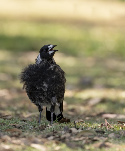 Magpie fledgling at Perry Lakes Park. The parents were keeping a close eye on him/her.
