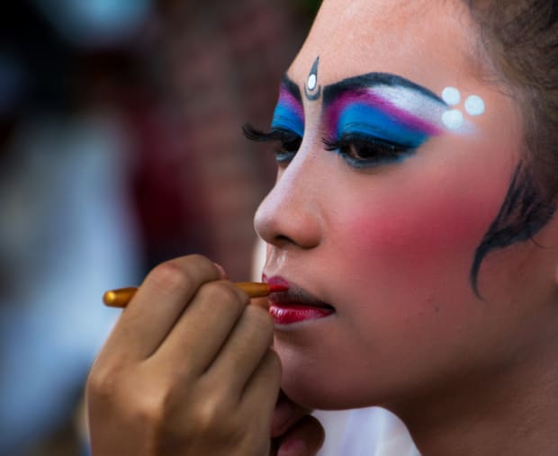 The process of applying make up to a Balinese dancer (her name is Dayu Intan).