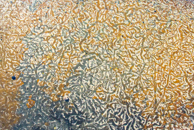 This artwork was done by sea snails found on a very old rock in Lorne beach, Victoria, Australia at low tide! The pattern of their path and the colour are amazing.