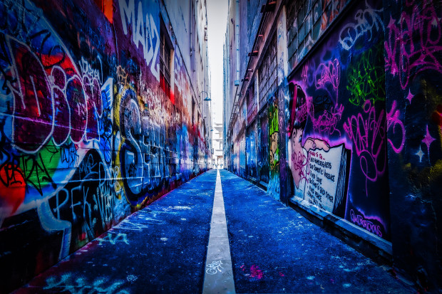Melbourne has some amazing laneways featuring very colourful graffiti. I feel that the white line down the centre of this lane helps to draw your eye into the image and invites you to explore further.