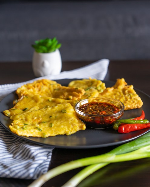 This is Indonesian traditional food called Mendoan tempeh, it's fried tempeh served with chilli