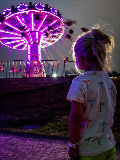 My son mesmerized by the bright lights and squeals of delight.
