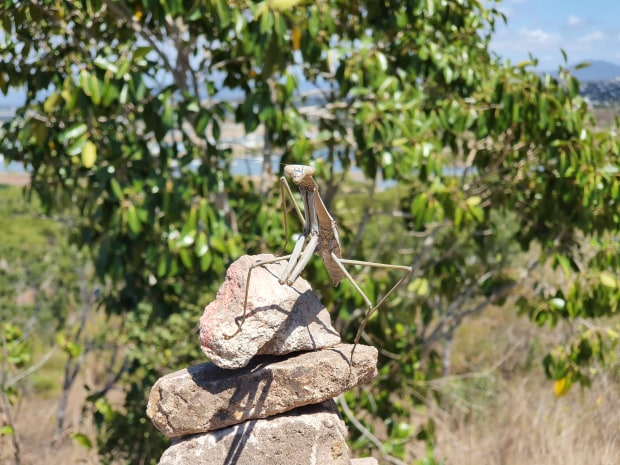 Praying manits found sitting on rocks in the beautiful north Queensland town of Bowen