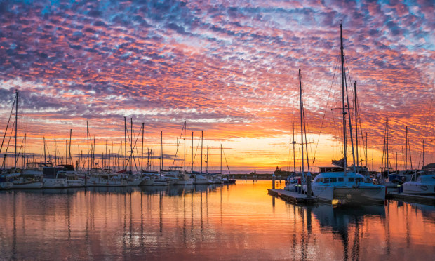 Beautiful sunset at Scarborough harbour, Queensland