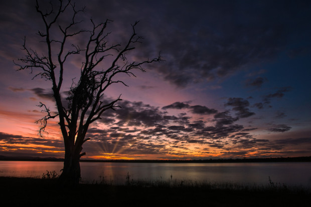 An early morning sunrise photo of Lake Elphinstone in Central Qld.