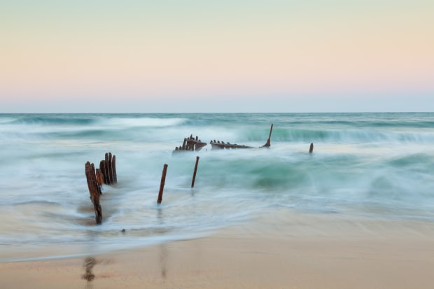 This much photographed wreck is no more on Dicky Beach as it has been removed for safety reasons. Hence, this photograph even more special to me. Early morning light and slow exposure.