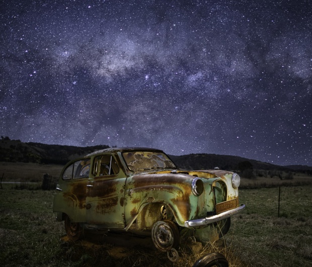 An abandoned Morris Minor made for an awesome star photo