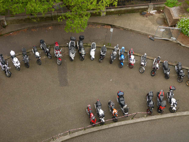 Anna Cross, motorbike parking (March Theme: Above)