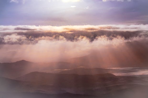 Low misty clouds over the Border Rnges National Park at Sunrise