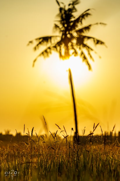 Summer is yellow... when the sun melts behind a palm, turning the sky into liquid gold.