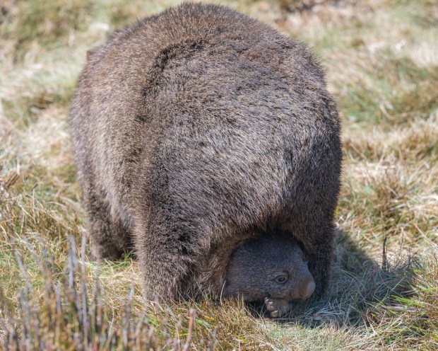 At Cradle Mountain we were walking along the boardwalk and saw this wombat with a clearly bulging pounch. When she turned around we originally saw a little paw but eventually a little head poked out too! The joey looked so content in there and wasn't in any rush to leave. Camera: Nikon Z6 Lens: Nikkor Z 24-200mm Aperture: f/9 ISO: 400 Shutter speed: 1/80s Edits: lifted the shadows to get a good look at the joey's face and cropped the image