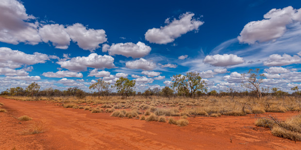 "My Happy Place. Red Dirt under an Outback Sky" . The Outback is my happy place. Taken near Winton in Outback Queensland on a very hot summer afternoon with a Nikon D750, Tamron 15-30 lens (at 15mm , 1/600 sec, f11)