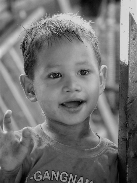 Visiting one of the small villages in Mynmar, this young boy welcomed us with a with a wave as we went past.