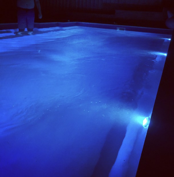 The lights reflecting in the water at nigh,t gives the pool a beautiful mystic blue calming feeling.