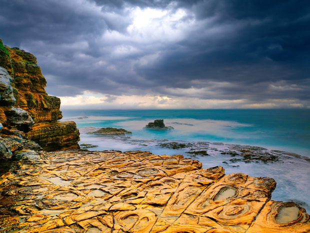 The unusual volcanic rock formation at Flagstaff Point in Wollongong along with long exposure capture creates an intriguing surreal image.