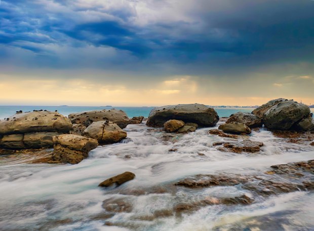 This long exposure photograph is taken on a overcast day on the volcanic rock platform at Flagstaff Point in Wollongong. The unusual rock formation along with the mystic feel of the long exposure creates a dramatic image.