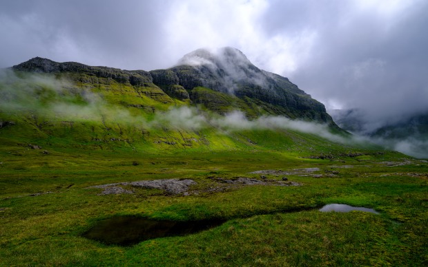 A series of cloudy landscapes in the mystical Faroe Islands .