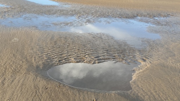 Mother nature's ever nurturing presence captured on camera in that very moment , when taking sometime to notice it ! Nature seems to be "sending out a depth of nurturing" from that 'heart of nature' itself , and for no reason at all ..... simply because .... it can !! The clouds are reflecting in the ocean water as the tide goes out ..... Enjoy.