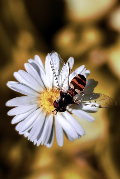 A delicate hoverfly rests lightly on a daisy, capturing a fleeting moment of harmony in nature.