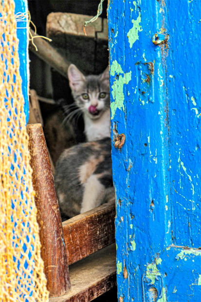The Greek islands are charming , full of colour and many cats peeking out from nooks and crannies