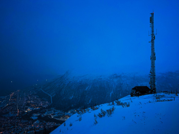 Winter's day in the Arctic Circle, above the town of Tromsø, Norway