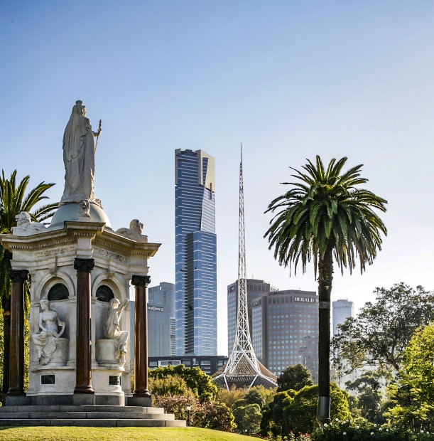 Queen Victoria Gardens with the Queen herself overlooking her domain.
