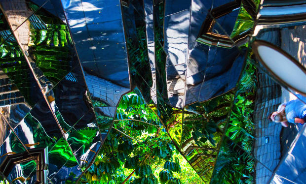 This image of walking under the clever building design at Flecker Botanic Gardens shows the reflections overhead. It is almost abstract in quality.