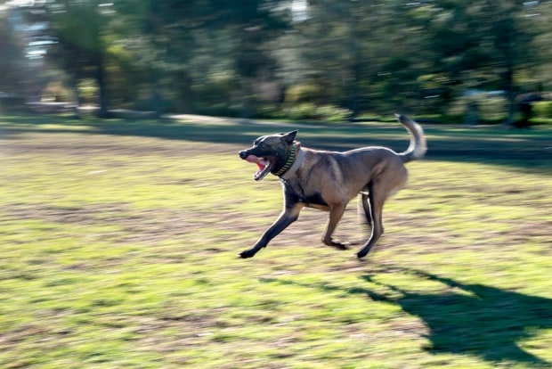 Panning captures the motion of a happy dog excited to be running off leash in a park