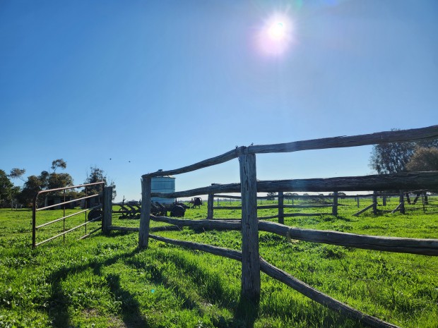 Retired sheep yards on a spring day