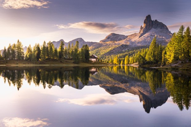Beautiful Lake Federa on a crisp morning in the Italian Dolomites 2025
