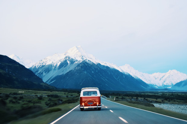 After the flooding on a bridge New Zealand, when we lost hope to continue our trip that was already very short for such a beautiful place, the authorities announced that the bridge was now open. As we continued towards our destination to Mount Cook, this red van showed us the way.
