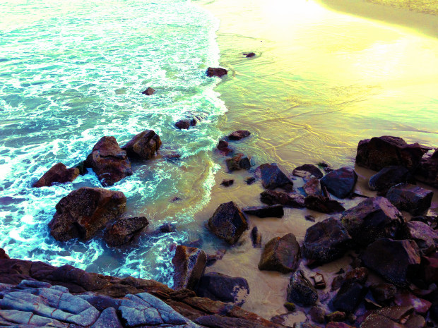This is a photo taken on Sunshine beach Queensland Australia, the colour was amplified for the contest. The purple shadowing and yellowing sand bring an alien feeling like the scene may be familiar but at the same time, it isn't.