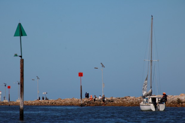 This photo was made on a Canon 750D with a Tamron 18-400mm lens. Shot at 227mm, f/13, 1/320 second @ ISO 100. I was trying to capture the yacht as it gently glided through the water towards the open sea while also getting the anglers along the breakwater included in the frame.