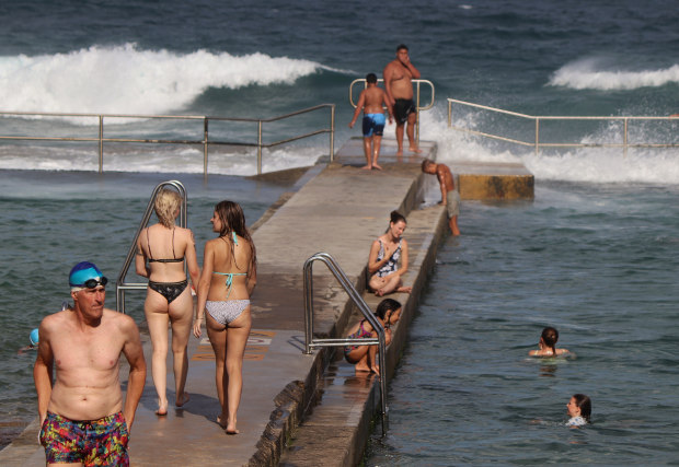 A diverse mix of people at the Austinmer ocean pool.